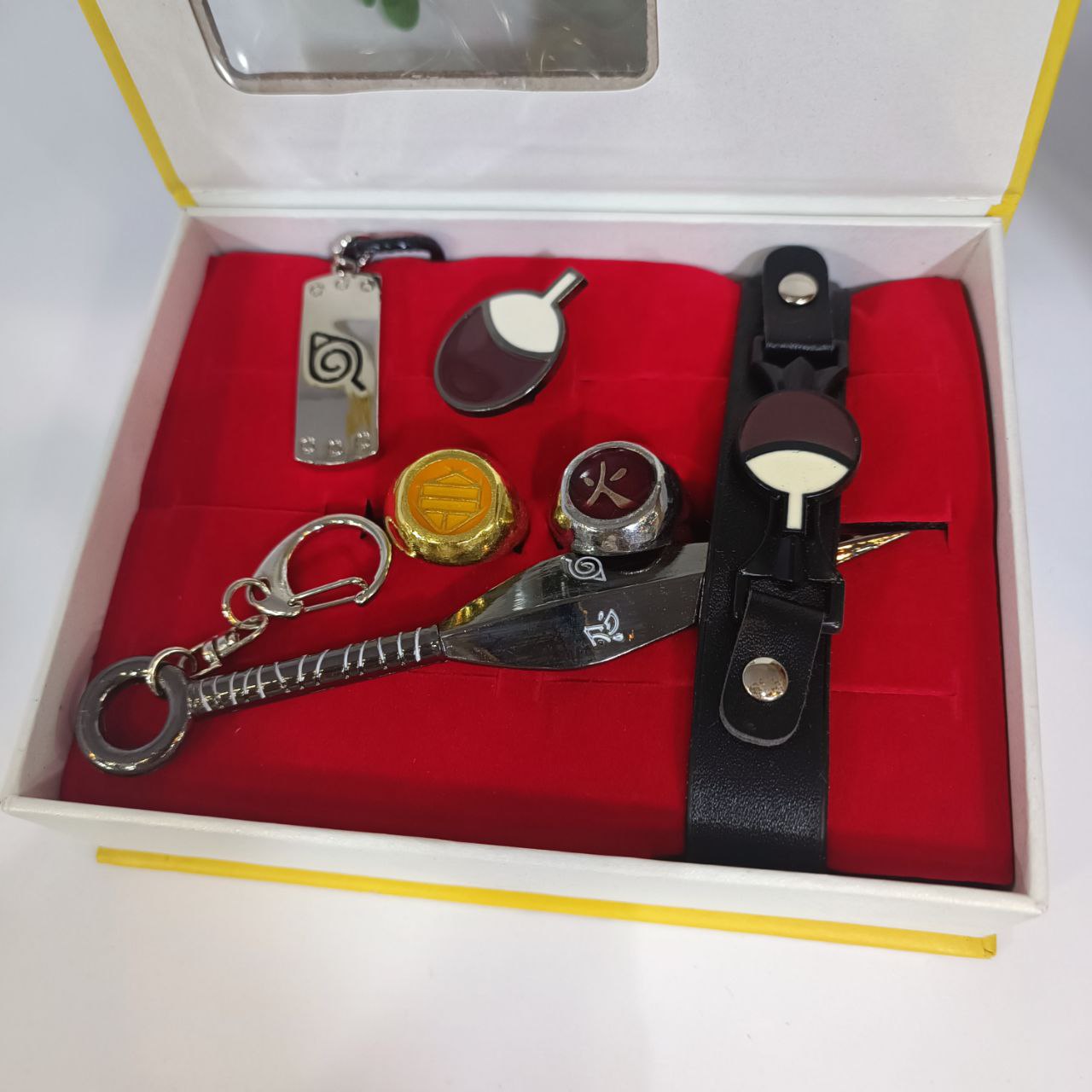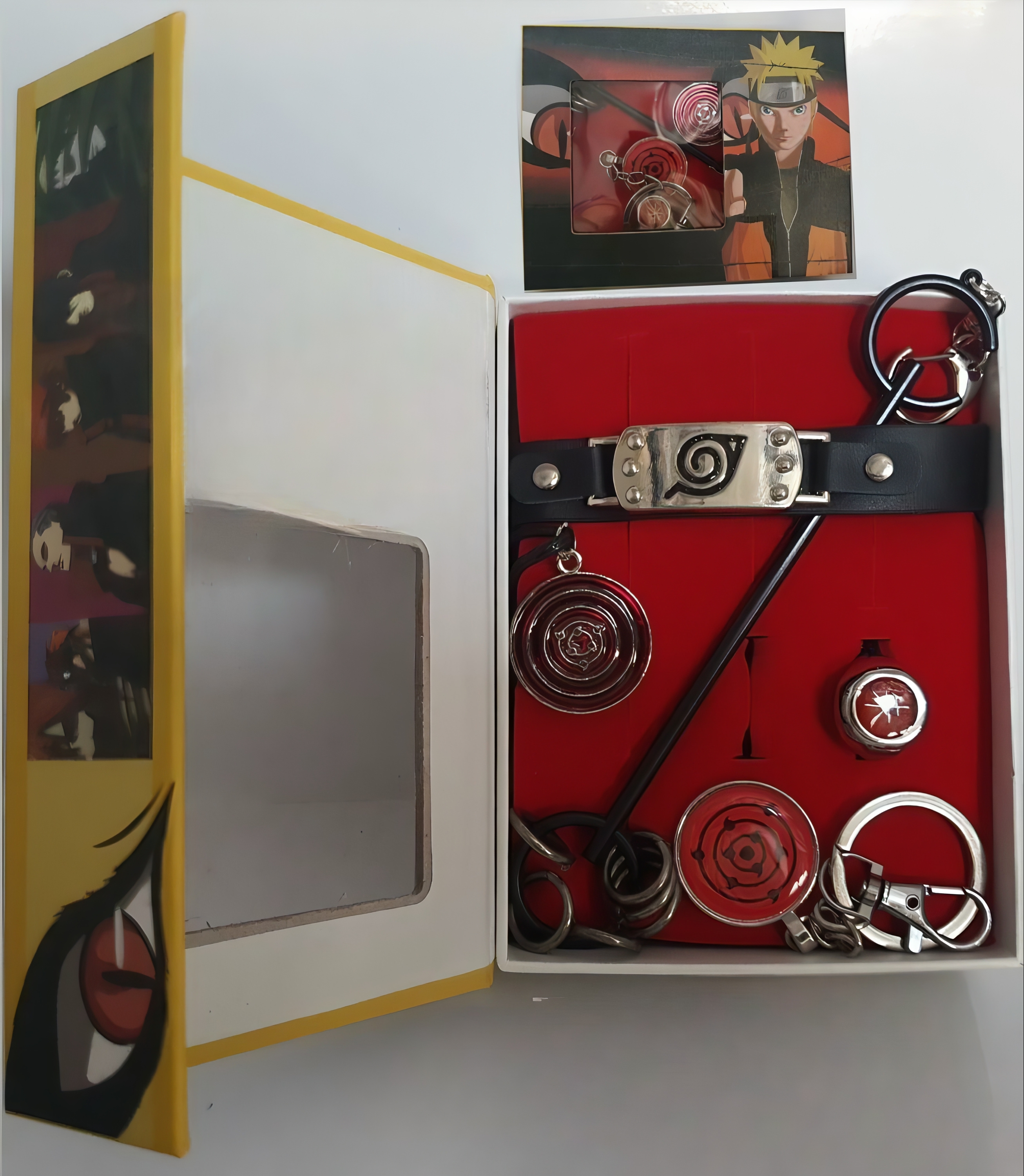 پک اکسسوری انیمه ناروتو همراه با جعبه (نمادهای دهکده برگ و چشم شارینگان)