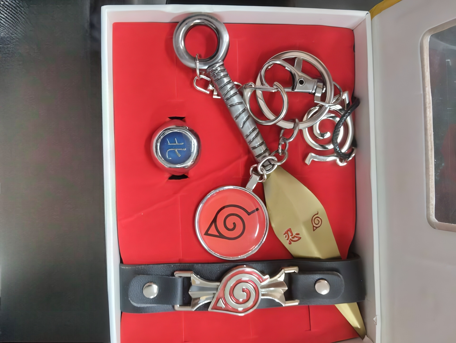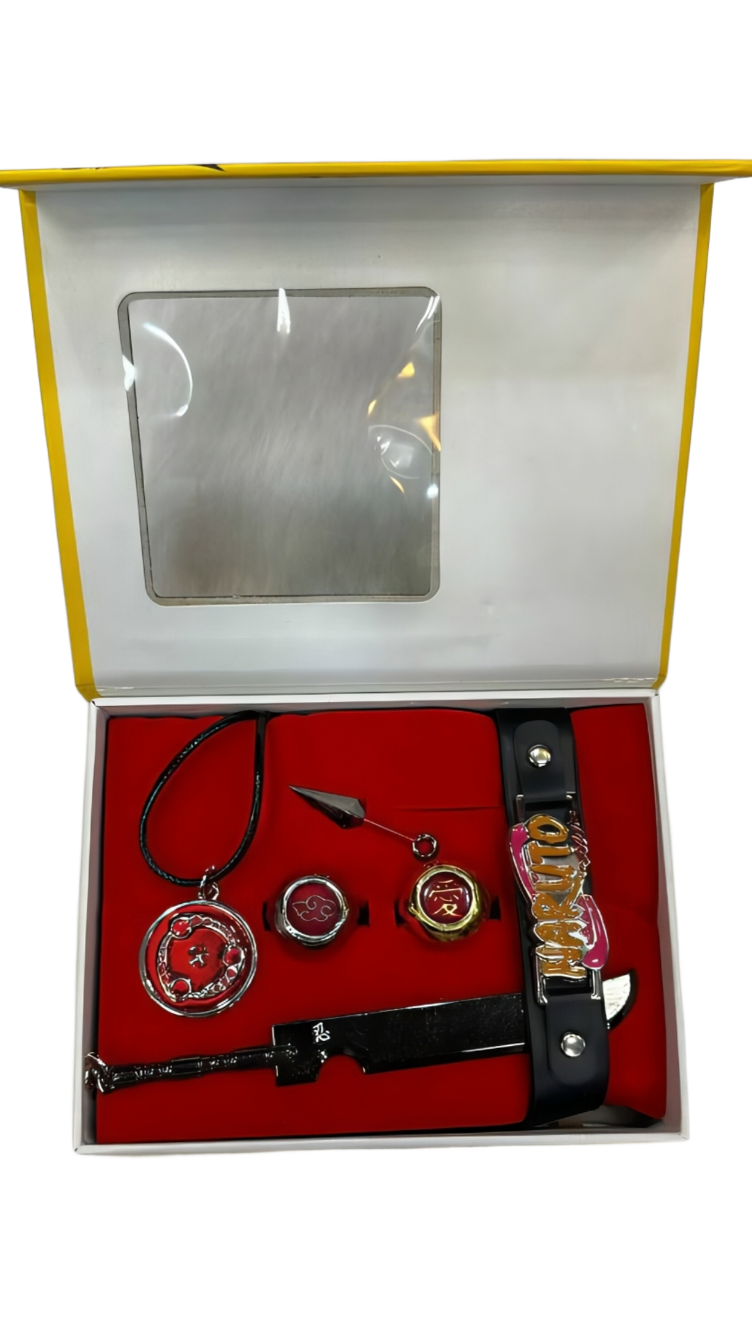 پک اکسسوری انیمه ناروتو با جعبه (نماد های آکاتاسکی و دهکده برگ)