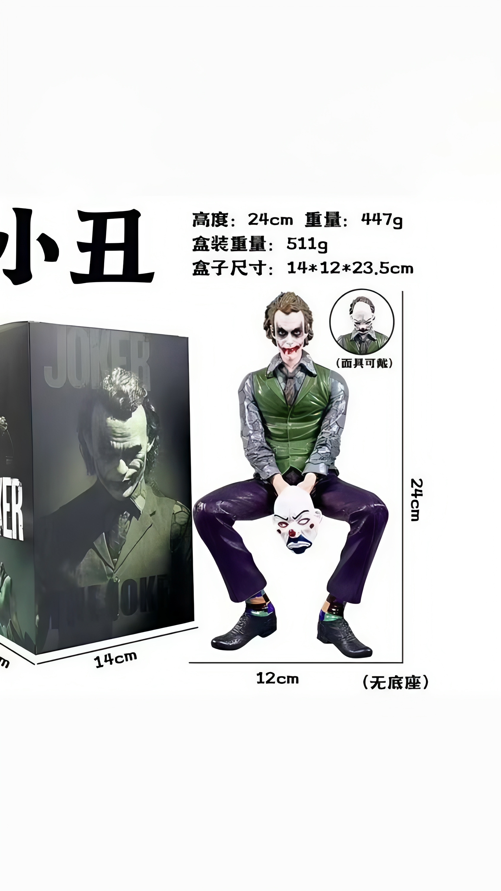 فیگور جوکر نشسته با ماسک بسته بندی با جعبه ۲۴ سانتی جنس سیلیکون فشرده درجه یک و نشکن و قابل شستشو وارداتی و با کیفیت عالی