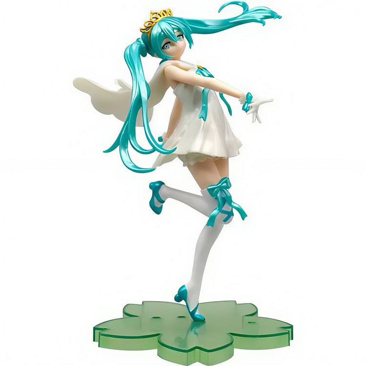 فیگور هاتسونه میکو با موی سبز متالیک و تاج دار همراه با جعبه ۲۲ سانتی طرح پانزدهمین سالگرد جنس سیلیکون فشرده درجه یک همراه با پایه جداشونده وارداتی و با کیفیت عالی نشکن و قابل شستشو