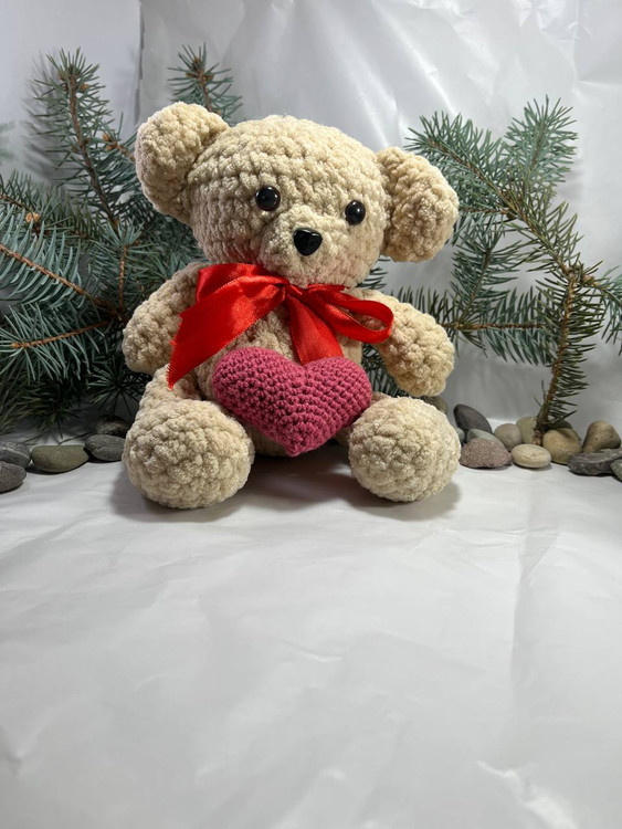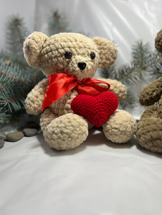 عروسک خرس دستبافت (بافته شده با نخ مخمل ترک با کیفیت)