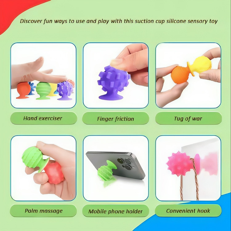 یکی از روش های تحریکات حسی کودکان استفاده از توپ های حسی میباشد ک از بدو تولد میتوان با آن ها بدن نوزاد را ماساژ داد و بعد از آن در حدود سه ماهگی ک نوزاد توانایی در دست گرفتن اجسام را دارد با در دست گرفتن این توپ ها به علت داشتن سطوح لمسی متفاوت تحریکات حسی لازم را دریافت کرده.