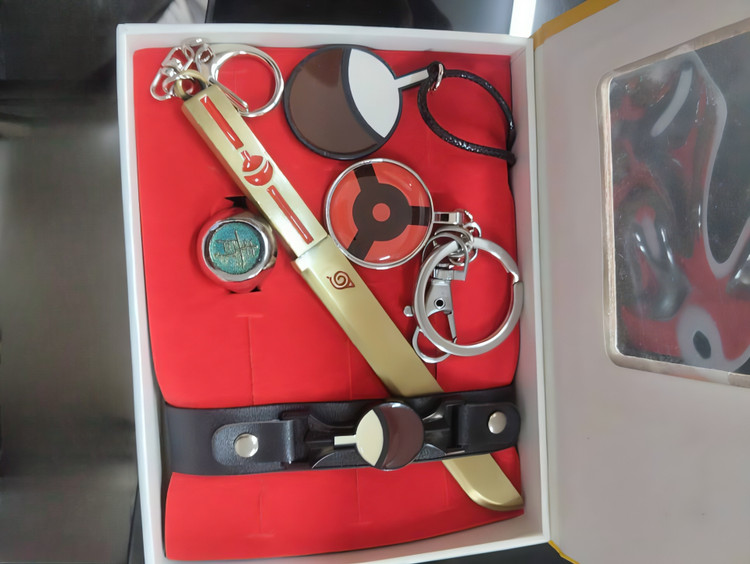 این باکس کلکسیونی ویژه طرفداران انیمه ناروتو طراحی شده و شامل قلم طلایی با نماد دهکده برگ، دستبند چرمی با نشان اختصاصی، سه کلیدساز با طرحهای محبوب (از جمله نماد اوچیها)، و انگشتر خاص با نگین فیروزهای و نوشته ژاپنی است. انتخابی عالی برای هدیه دادن یا کامل کردن کلکسیون شما.»