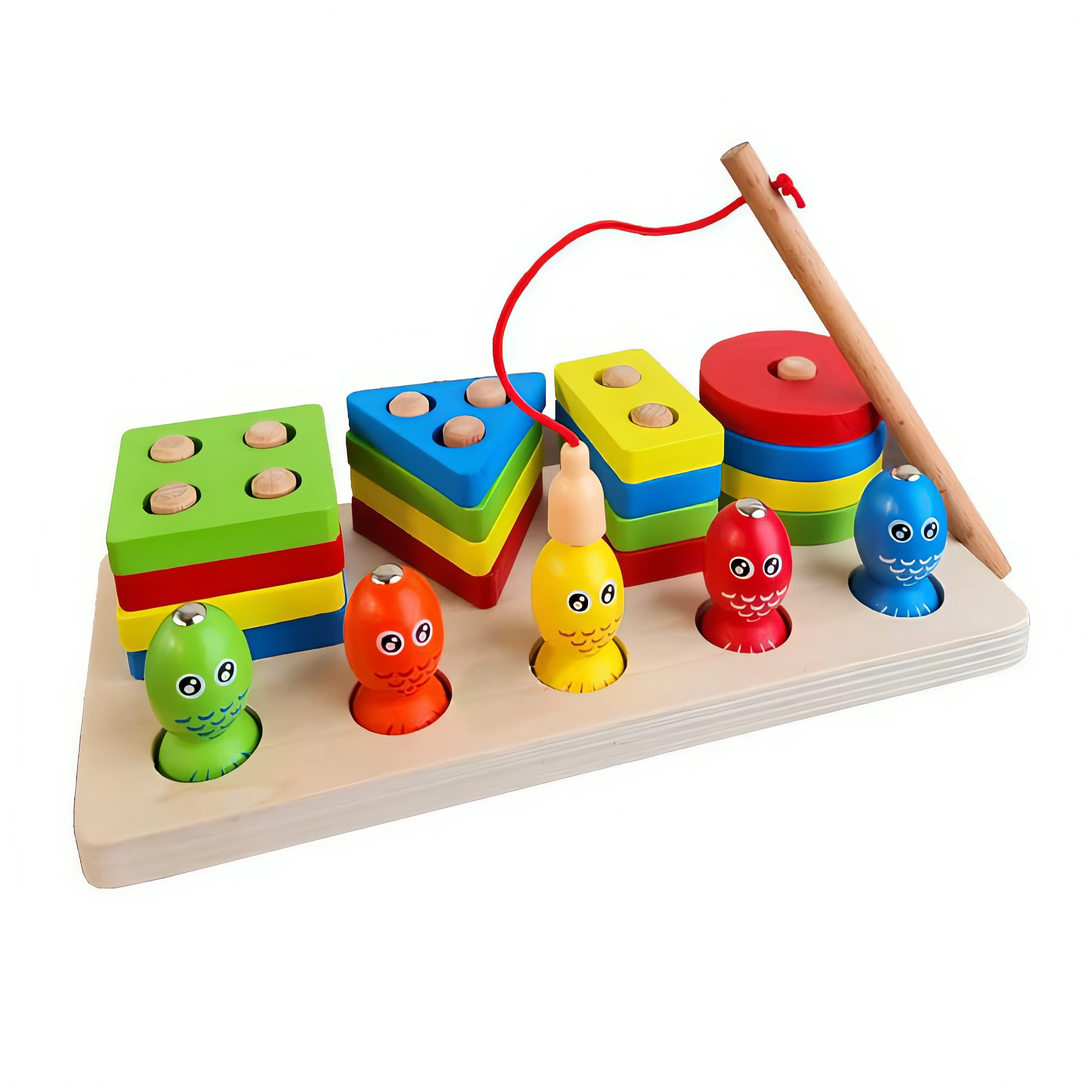 اسباببازی پایه اشکال چوبی مونته سوری و ماهیگیری آهنربایی وارداتی ۱۶ تیکه جعبه دار ساخته شده با چوب مرغوب