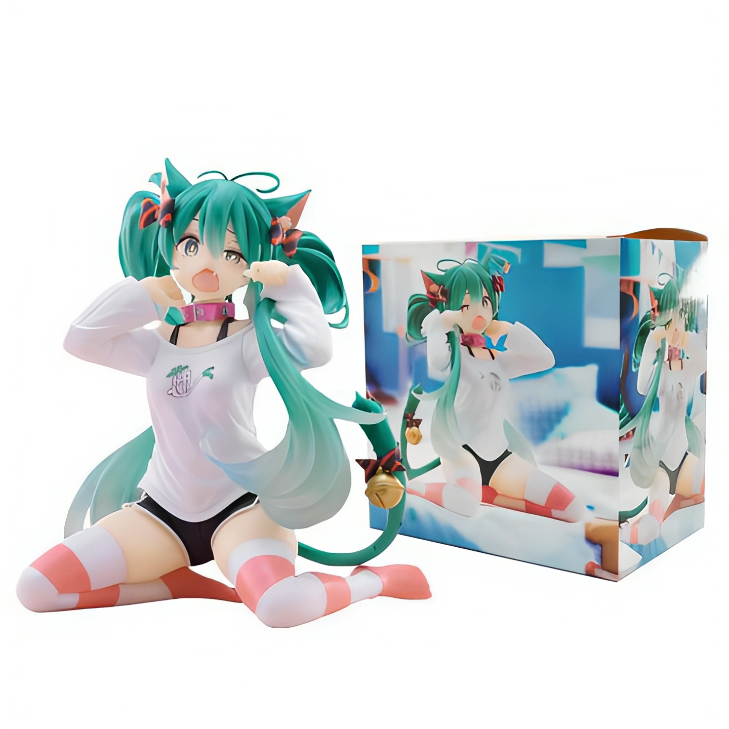 هاتسونه نشسته با موهای سبز جعبه دار ۱۱ سانتی جنس سیلیکون فشرده درجه یک و نشکن و قابل شستشو وارداتی و با کیفیت عالی